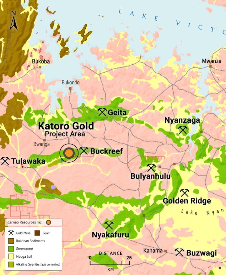 Cameo Resources has acquired interest in the Katoro Gold Property and is in the process of acquiring the adjacent Kempton Gold Property within the Lake Victoria Goldfields in northwest Tanzania.
